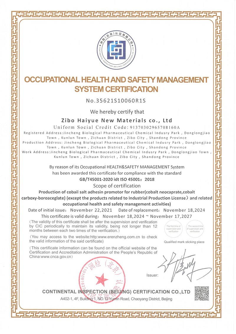 新癸酸鈷、硼?;挕⑾鹉z鈷鹽粘合劑找:淄博海岳新材料有限公司